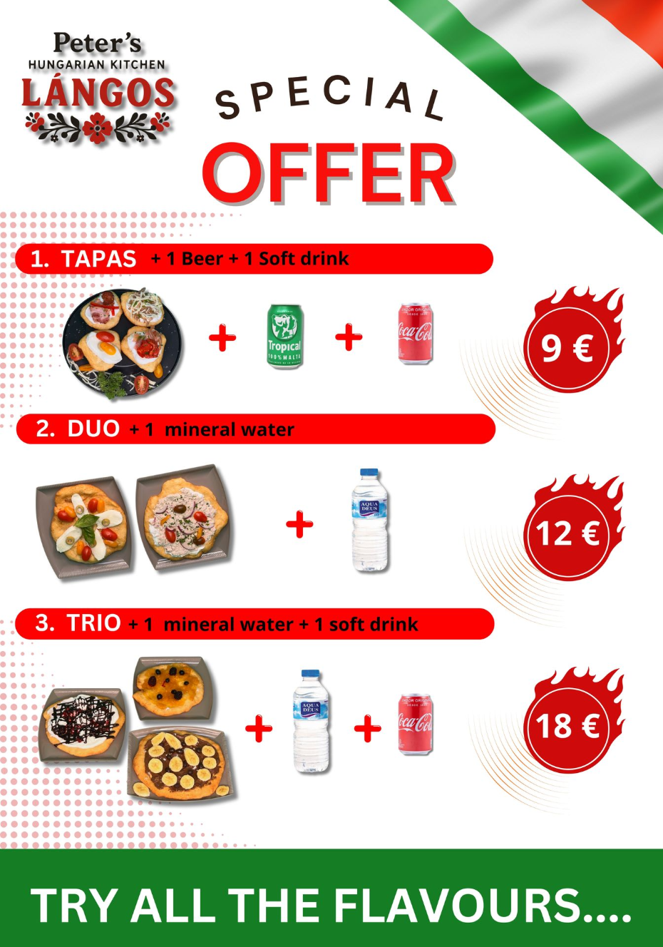 Lángos can be combined in any flavor